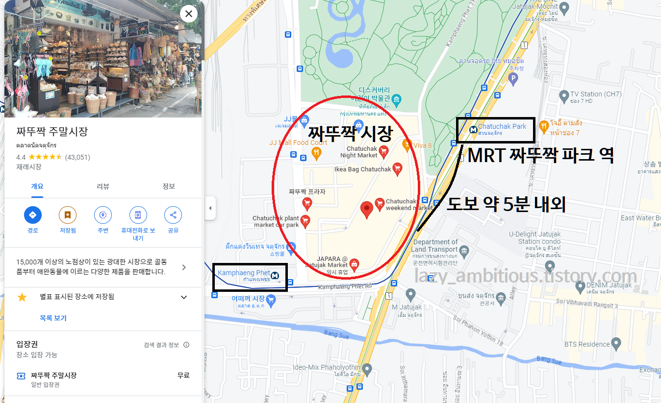 (심지어 구글맵으로 돌려봤는데 2019년 맵이 마지막이라 현대화 된 짜뚜짝 시장 건물은 안 보인다.)