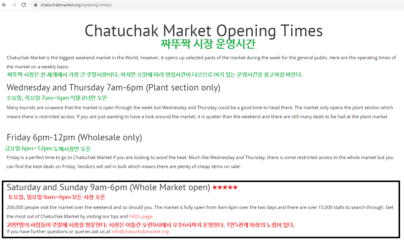 일단 주말에만 열기 때문에 거의 대부분의 관광객들이 주말 중 하루는 짜뚜짝을 방문한다고 보면 된다.