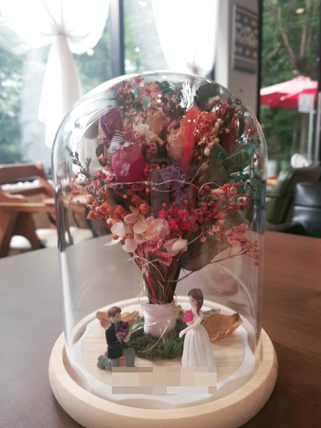 남편이 나에게 내민 것은 말린 꽃을 넣어 만든 작은 유리돔이었다.
