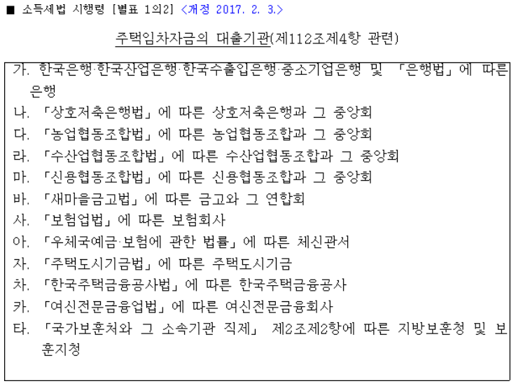 ▶ 소득세법 시행령 [별표 1의 2]에 의한 대출기관