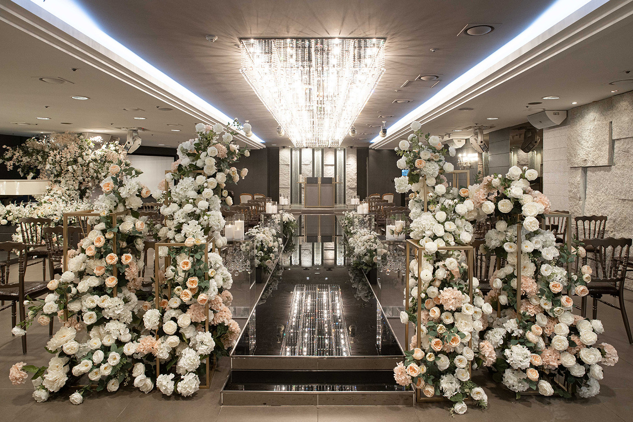 - 홀 인테리어가 예쁘다는 평가가 많은 인기있는 웨딩홀