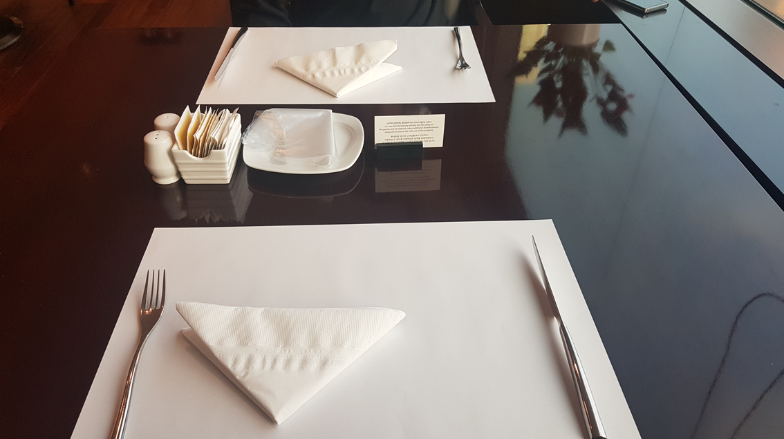 디너는 4인석이 기본인데 조식은 2인석이 기본이다.