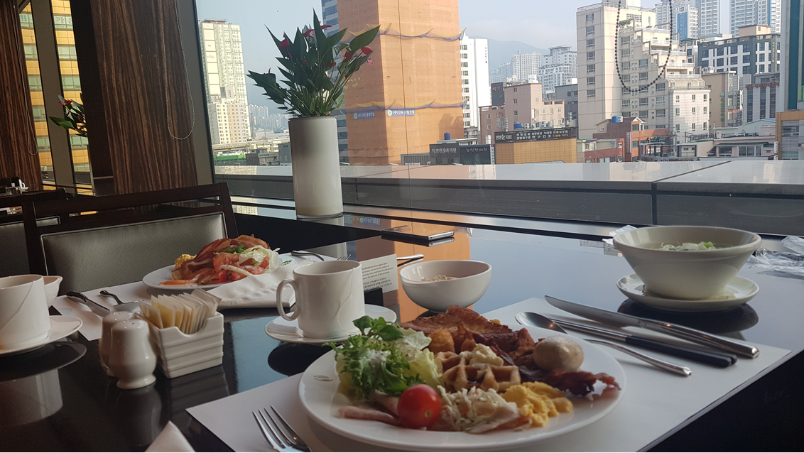 롯데호텔부산은 딱히 뷰라고 부를 게 없는 호텔이긴 하지만, 새벽공기 자체가 뷰를 만들어 주는 너낌.