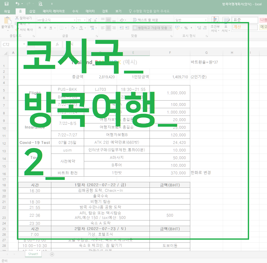 ※ 제가 이번 여행에 실제 활용한 계획서지만, 금액은 다소 멋대로 조정해두었음을 참고하시기 바랍니다.^^