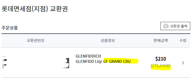 글렌피딕 23년산 결제가는 210달러(275,104원)