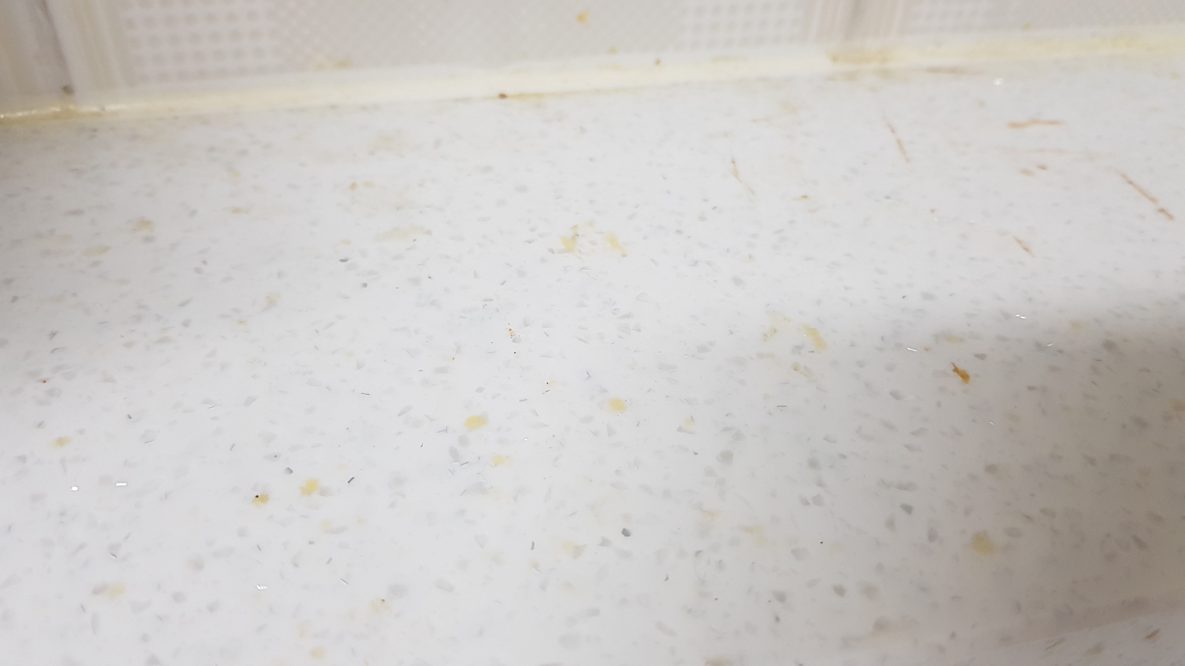 처음엔 대리석 무늬 때문에 정확히 발견하지 못했는데, 하루이틀 지나면서 점점 노랗게 변하는 흉터들(?)을 손으로 만져보니 으아아아아아 기름때가 아닌가!!!!