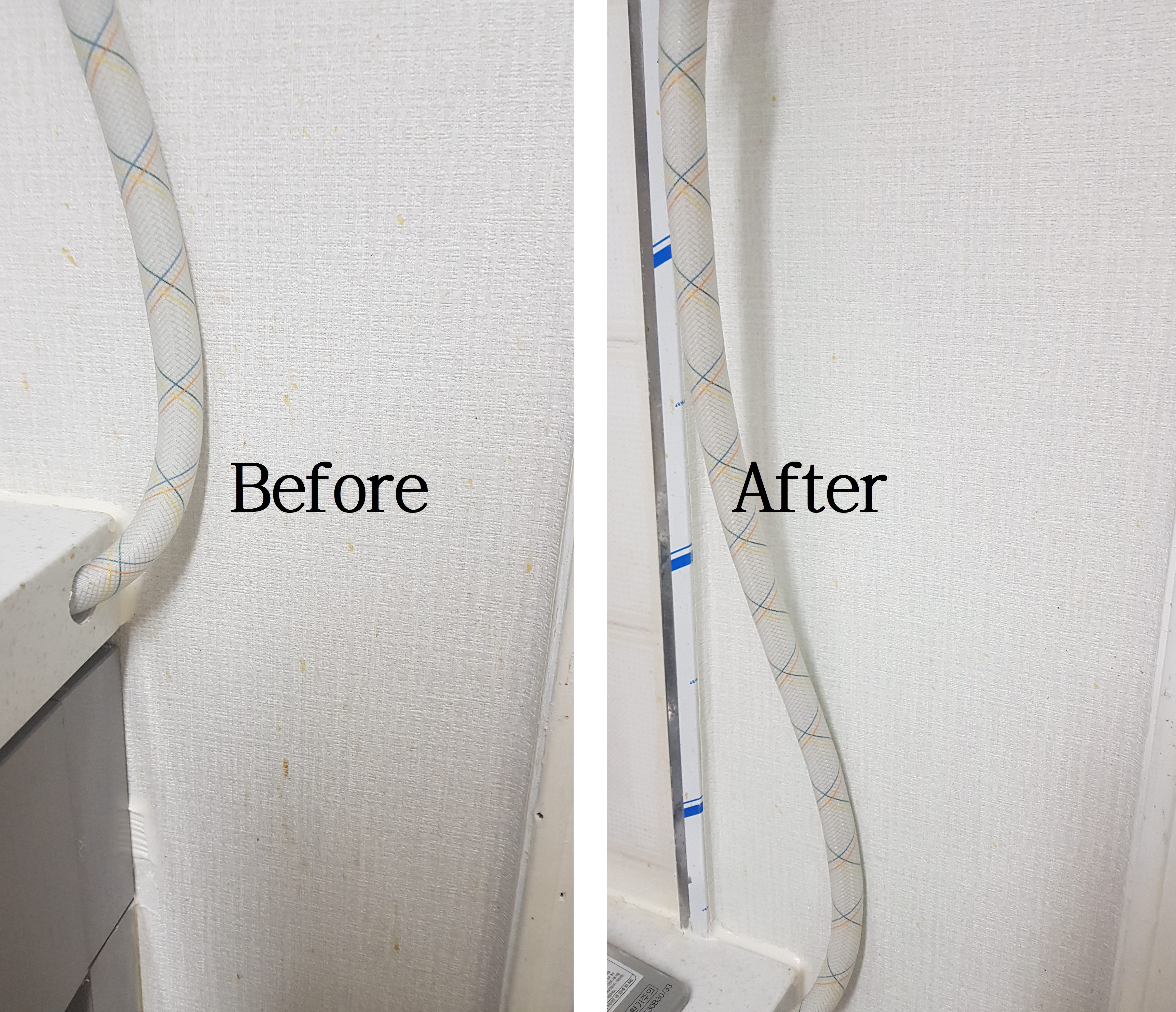 욕실 전체가 이 지경이었는데 오른쪽처럼 말끔하게 싹 지워졌다.