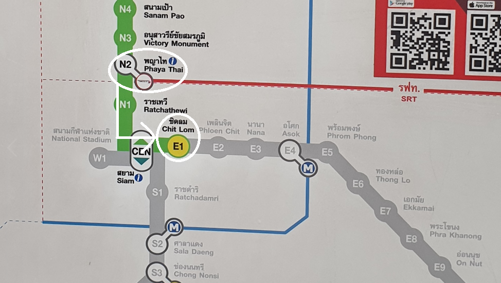 (파야타이역에서 환승해서 BTS타고 칫롬역으로 갈 예정. 근데 환승이라고 해서 요금할인 되고 그런거 아니다. 그냥 돈 그대로 내는 거.)