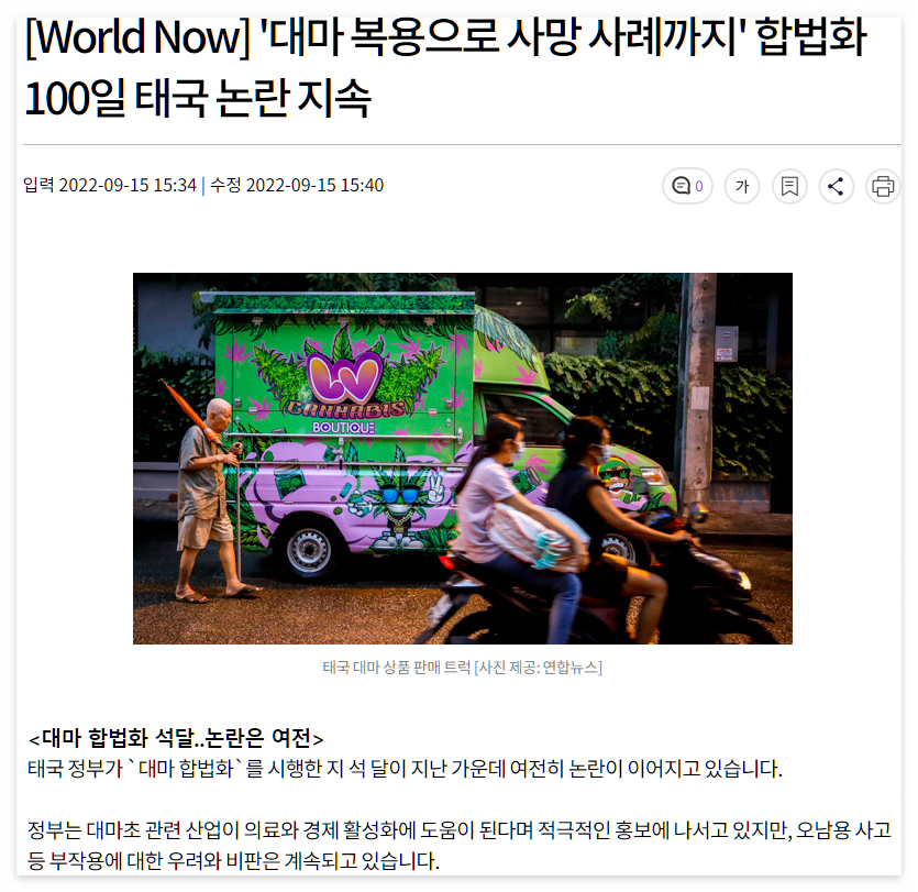 대마 합법화 이후 뉴스나 언론, 여행 카페에서도 대마 관련 이슈로 떠들썩한데,