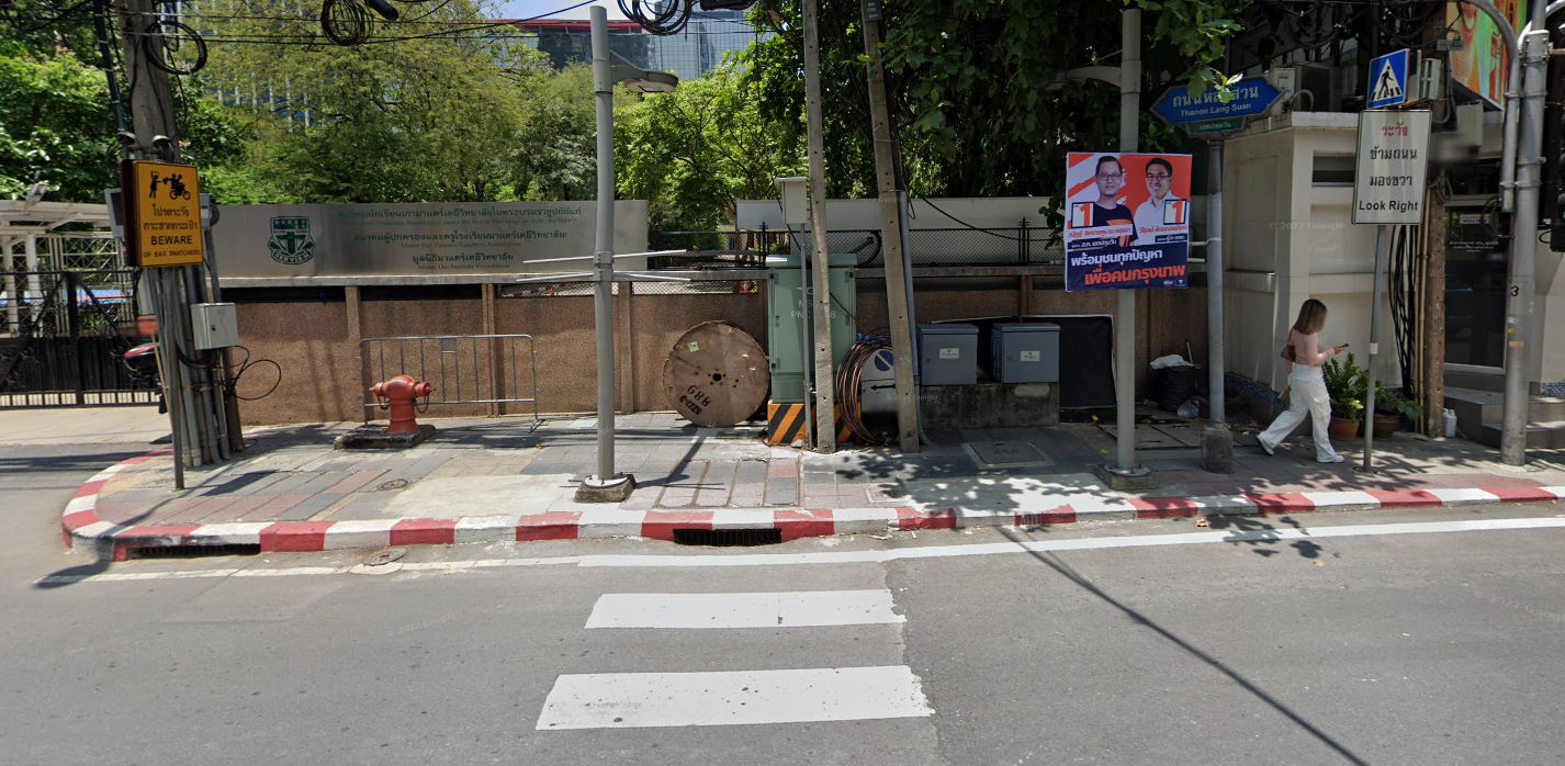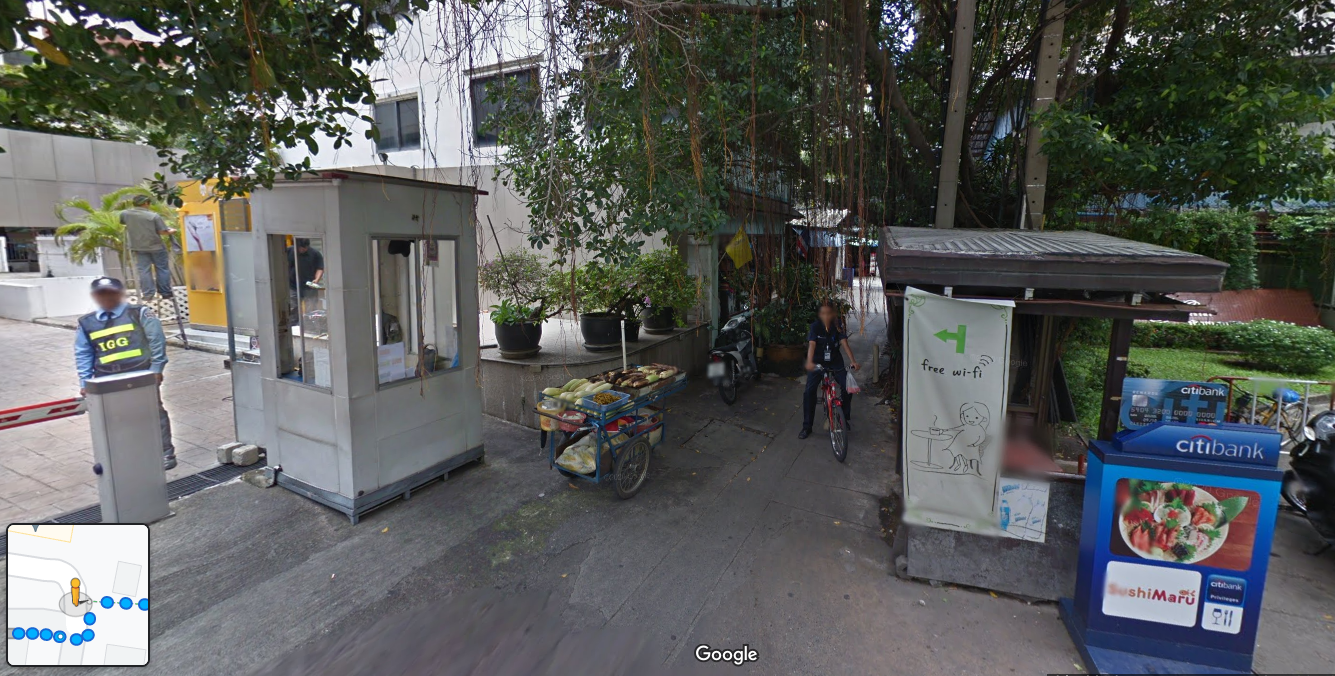 실제로 칫롬역에서 코트야드로 가는 길에 있던 건널목인데, 오른쪽에 분홍색 상의를 입은 여자가 보이는가..