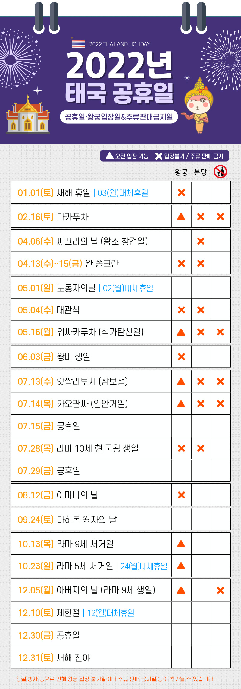 ※ 설명하는 김에 들고 온 2022년 태국 공휴일 자료