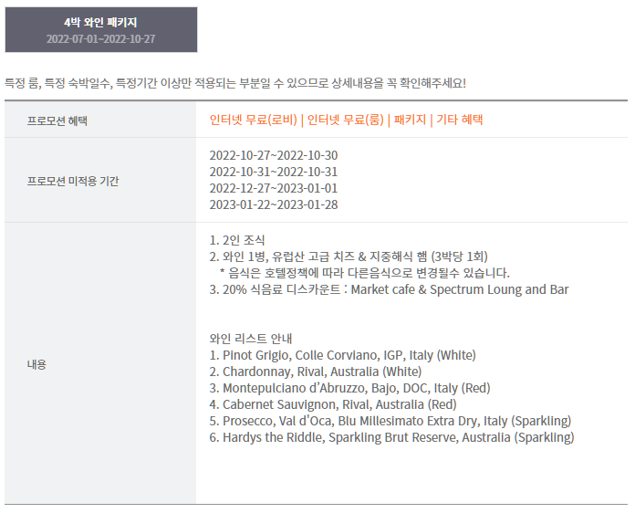 내가 예약할 땐 못 봤던 패키지인데, 와인패키지도 있다.
