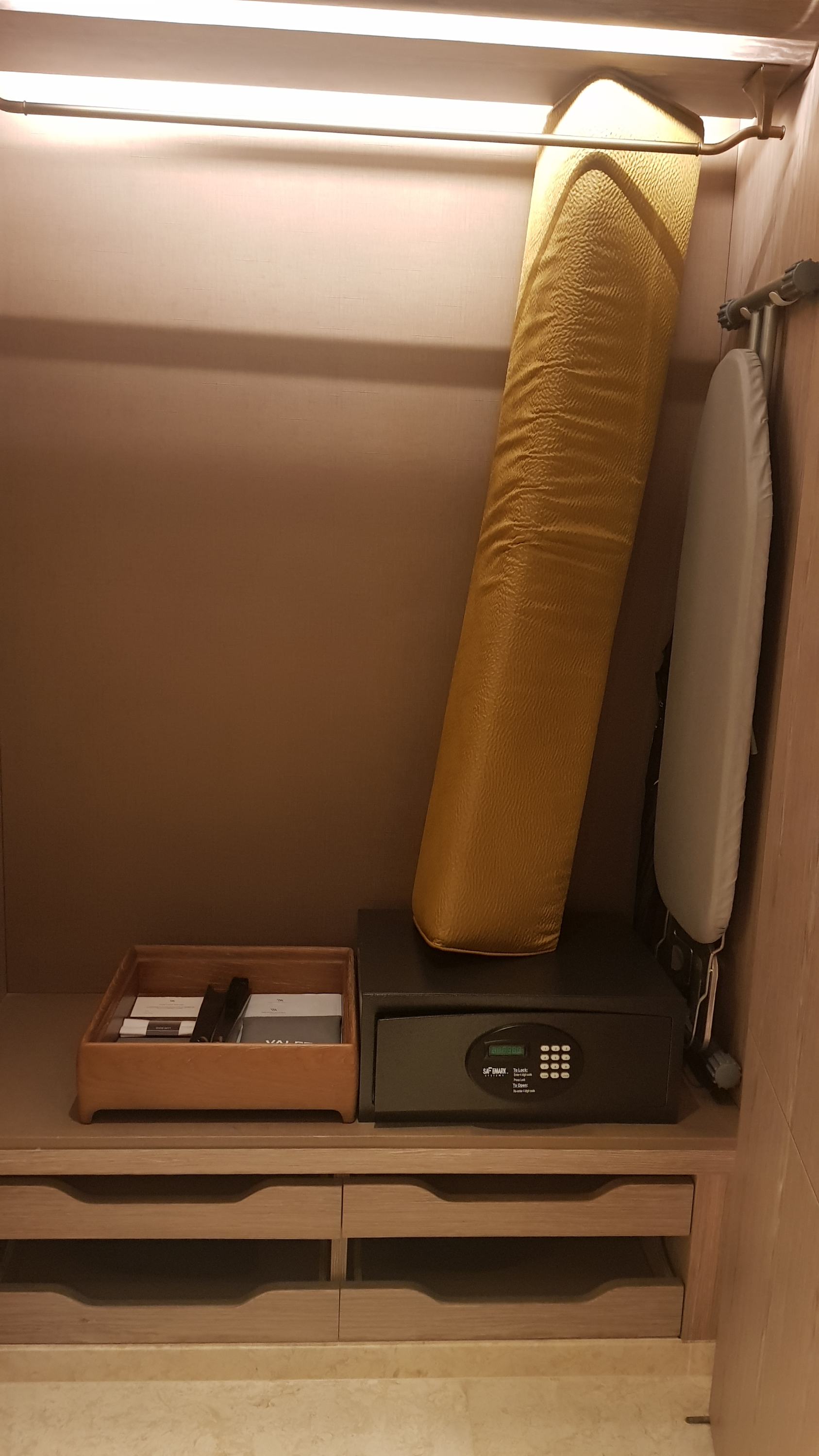 다리미판과 세탁물 요청서, 뭔지 모르겠는 큰 쿠션, 옷장, 그리고 일찌감치 가져다 둔 우리의 캐리어들.