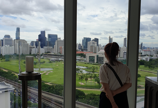와이 인사법으로 인사해주시는 경비원 아저씨에게 우리도 같이 인사를 한다.