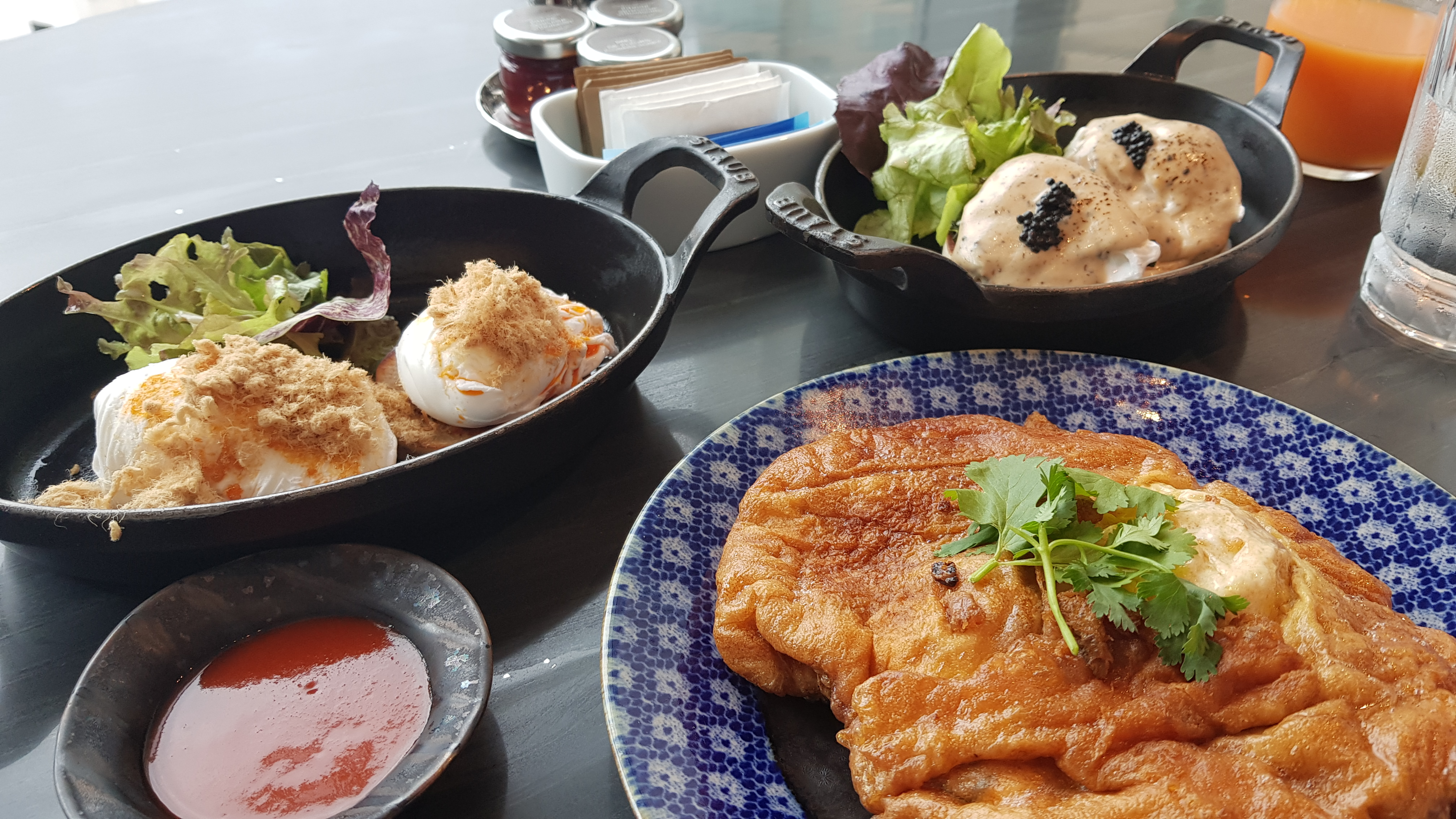 칠리 에그 2개와 트러플 에그 2개, 그리고 타이 오믈렛(태국식 오믈렛)