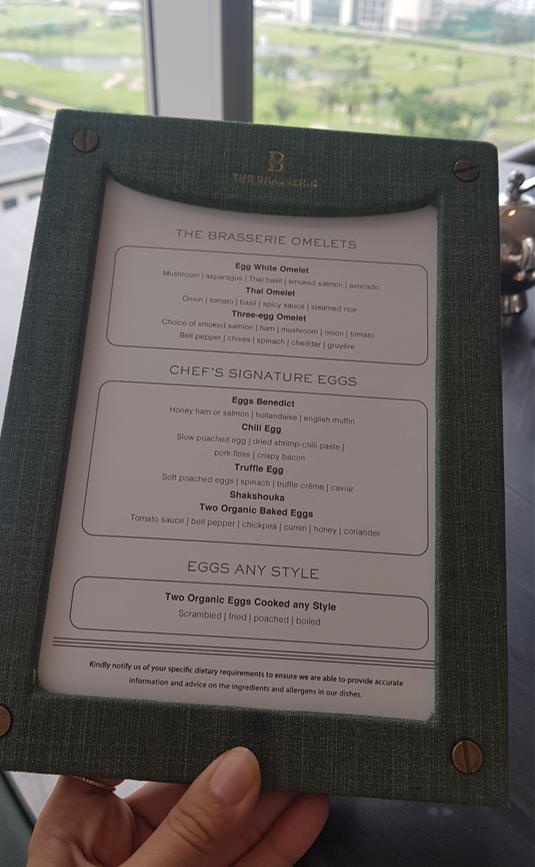 - 오믈렛 3종: 에그화이트 오믈렛, 타이 오믈렛, 쓰리에그 오믈렛