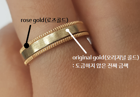 ※ 오리지널 골드의 경우, 오리지널 골드가 싫증나면 로즈골드나 화이트골드로 도금을 할 수는 있어도, 도금반지를 오리지널 골드로 되돌릴 순 없다고 함. 뭐? 다시는 못 돌아와? 오히려 좋아. 왠지 결혼생활에 대한 다짐과 비슷한 느낌이라 오리지널 골드로 결정! (사실 흰 피부인 남편에게는 화이트골드가 어울리고, 까무잡잡한 내 피부에는 로즈골드가 어울려서 어떻게 해야하나 고민하다 절충안으로 오리지널 골드를 선택했다. 기본 베이스는 오리지널 골드에 테두리 역할을 하는 톱니바퀴는 로즈골드로 도금!)