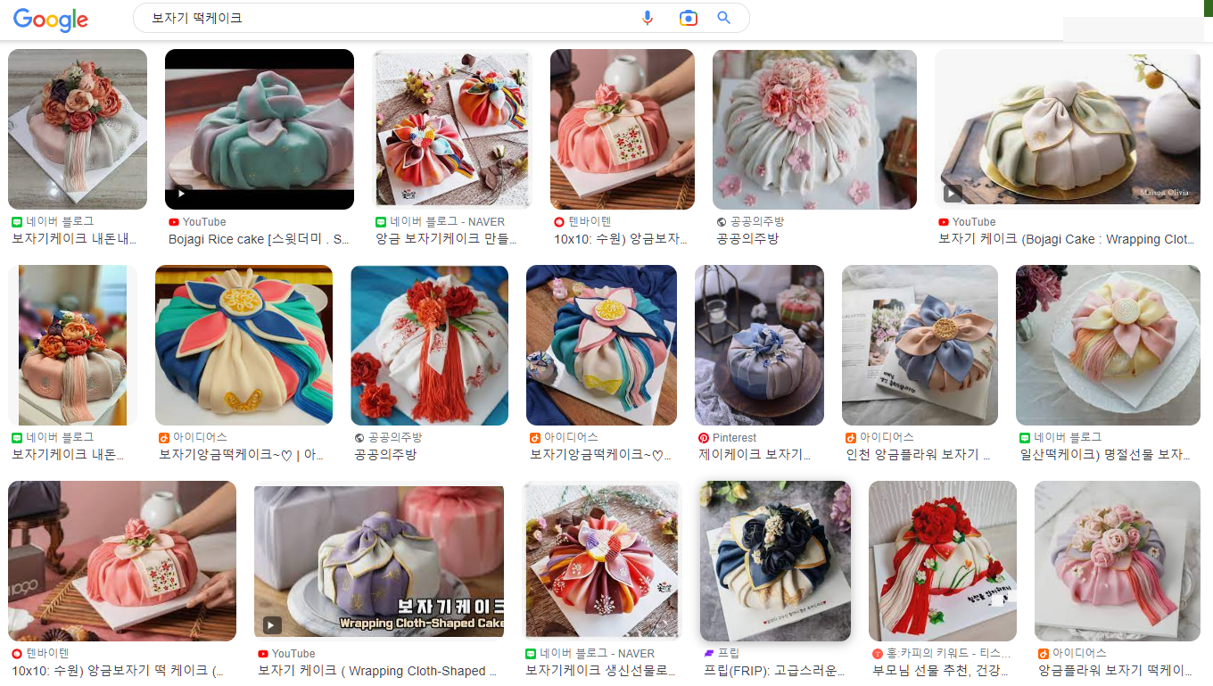 구글에서 보자기 떡케이크라고 검색하면 나오는 이미지들이다.